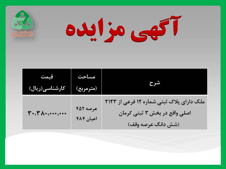 مزایده ۷ قطعه زمین واقع در هفت باغ کرمان
