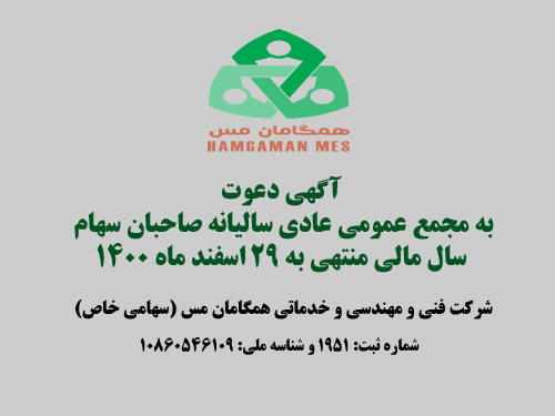آگهی دعوت به مجمع عمومی عادی سالیانه صاحبان سهام سال مالی منتهی به ۲۹ اسفند ماه ۱۴۰۰